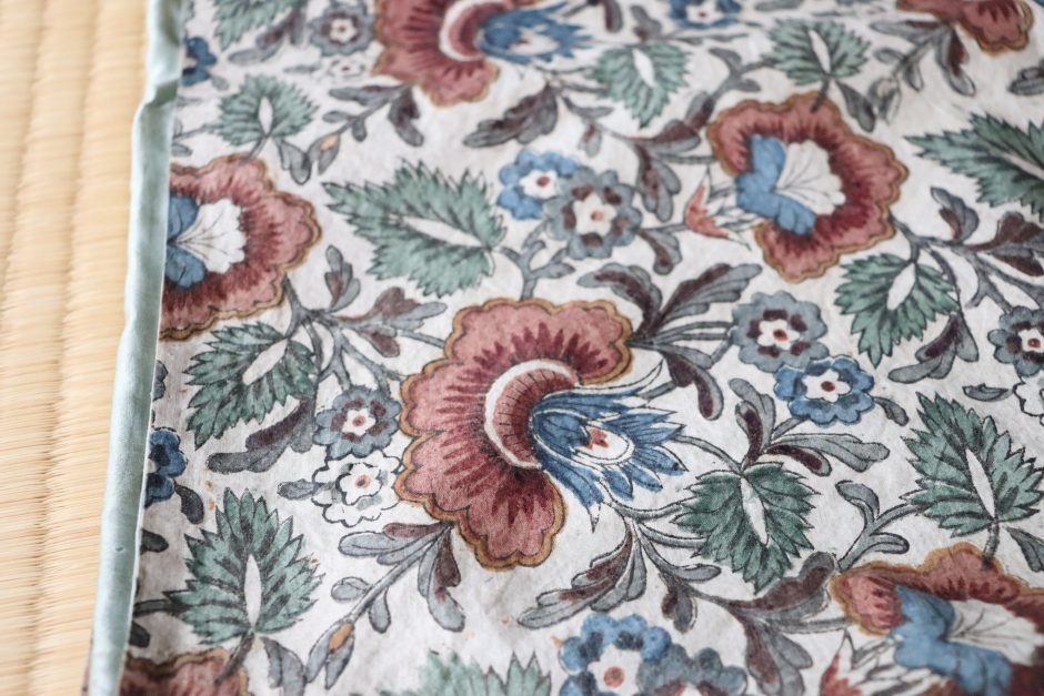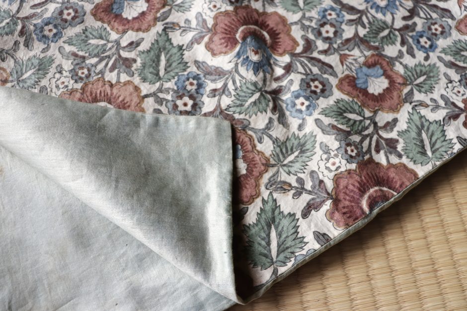 冒頭にも多様な産地について触れましたが、今回の品はというと模様や色合いの雰囲気からインドからヨーロッパ向けに作られた更紗かと思われます。