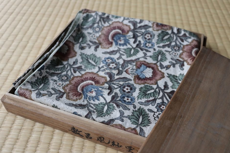 この品が渡ってきた経緯など考えると…おそらく煎茶道具の「茶具敷」として使われていたのではないでしょうか。