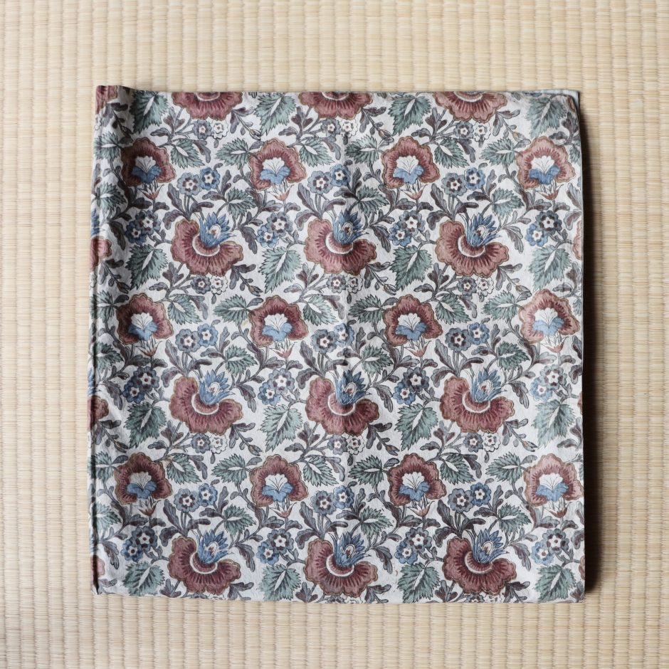 更紗が日本に渡ってきたのは16〜17世紀ごろ、南蛮船やオランダ船によってもたらされたといわれています。目新しく鮮やかな異国の模様やデザインは当時の日本人の目を輝かせたことでしょう。更紗はインド更紗をはじめ、和更紗、ジャワ、ヨーロッパなど産地も様々です。豊富なデザインに今でも見飽きることはないですね。